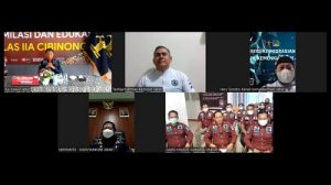 Kakanwil dan jajaran Pimti kemudian menyapa dan memberikan motivasi kepada petugas di lingkungan UPT Kemenkumham Jawa Barat Rayon Bogor Raya yang terpapar Covid-19 dan menjalani isolasi mandiri melalui teleconference.