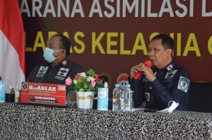 Wartadki.com|Cibinong – Kepala Kantor Wilayah Kemenkumham Provinsi Jawa Barat, Sudjonggo, memberikan pengarahan terkait Penanganan dan Pengendalian Covid-19 kepada seluruh petugas di Rayon Bogor Raya, di Aula Sarana Asimilasi dan Edukasi Lapas Cibinong, Sabtu (12/2).